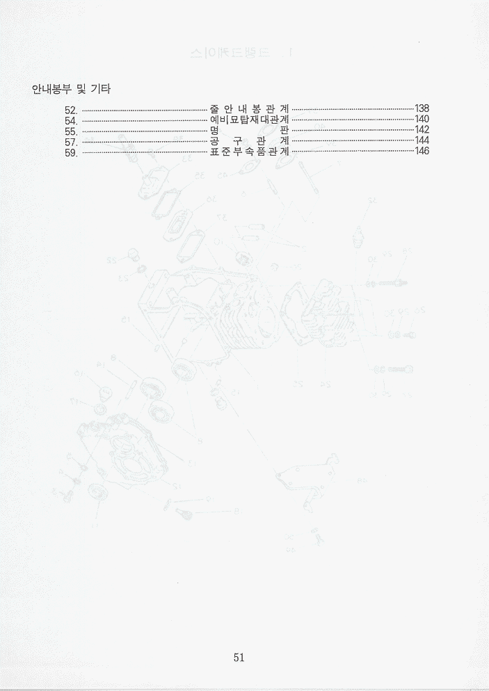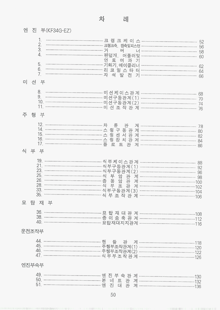 목차 | 사진 | 설명서 | 엔진부52~67 | 밋션부68~77 | 주행부78~87 | 식부부88~107 | 묘탑재부108~117 | 운전조작부(핸들)118~129 | 카바및기타130~147 |