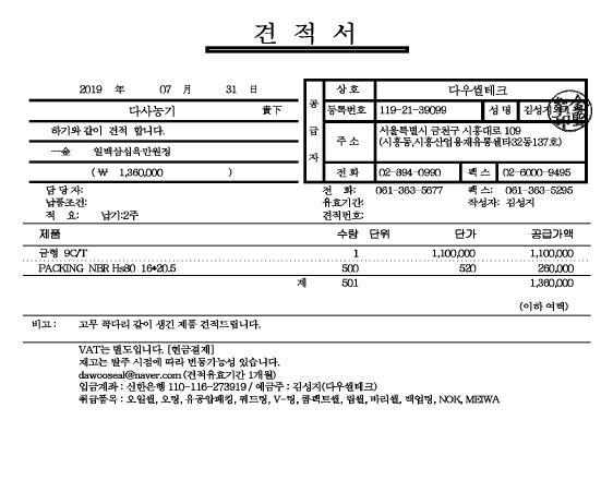 ※첨부파일: 111 다우실견적서