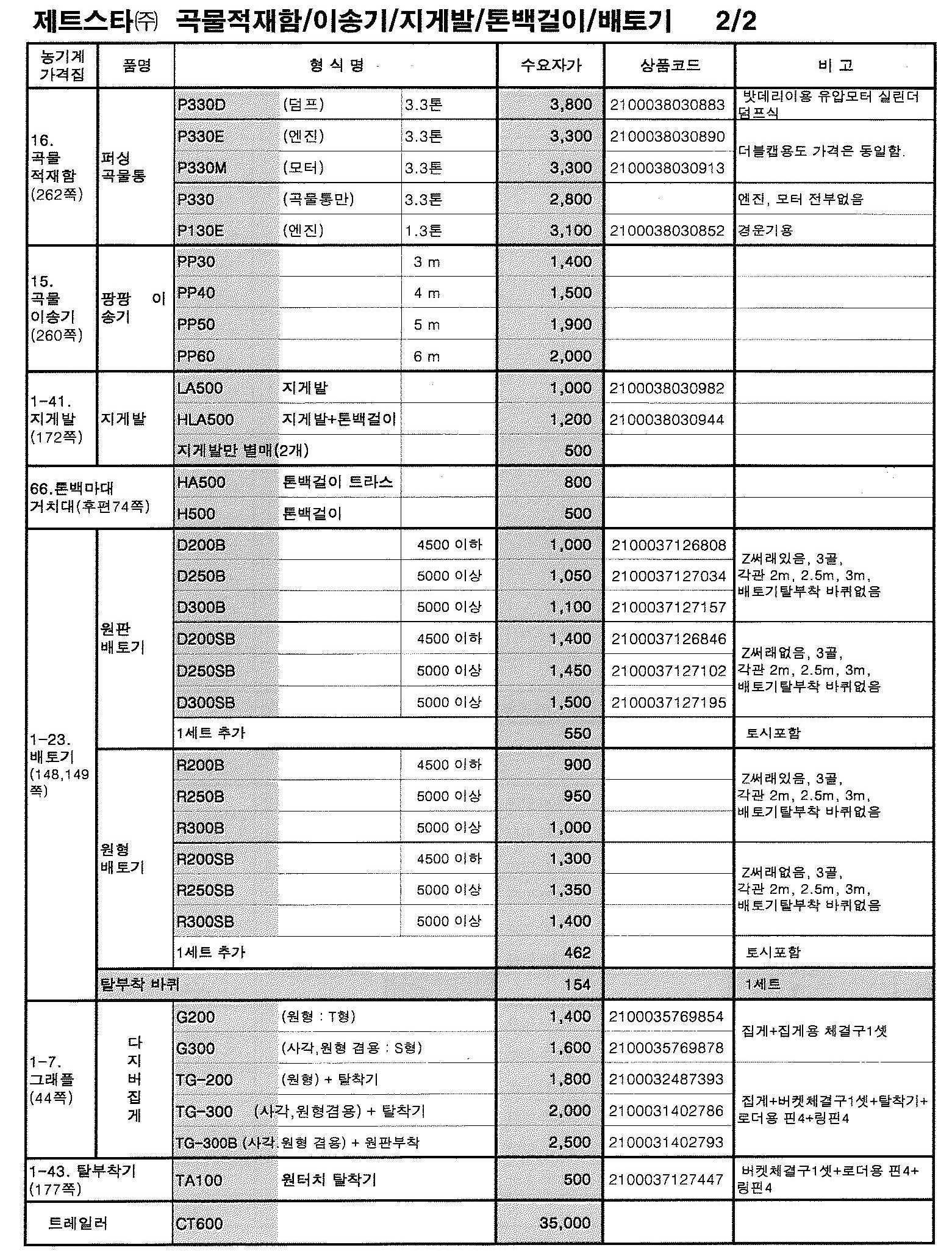 ※첨부파일: 써래단가표, 적재함및기타단가표